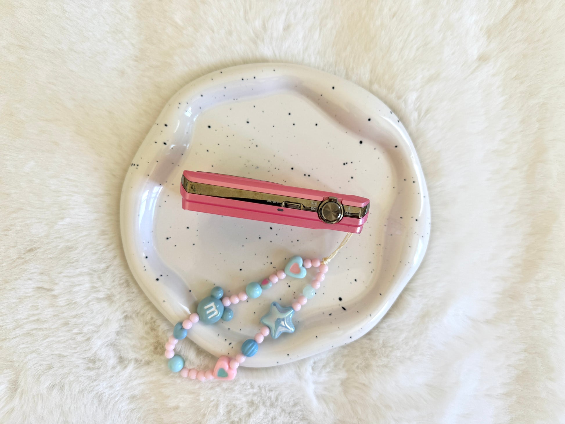 Handmade beaded charm included